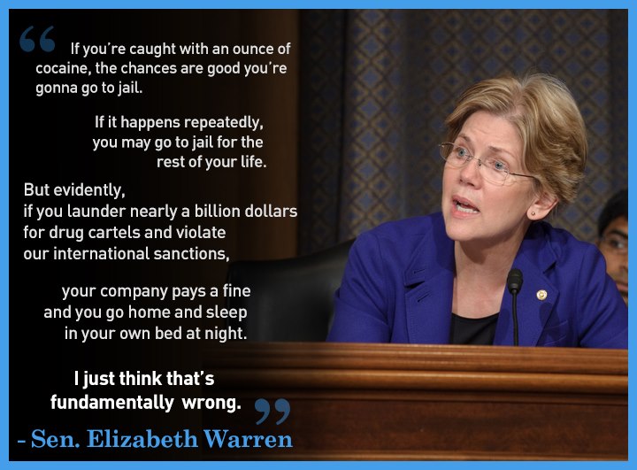 Let’s have a show of hands – how many of you are still pissed off at the big banks and Wall Street but don’t know what to say or do about it? Sen. Elizabeth Warren (D-MA) does. This time she might have been unable to stop Congress from passing a bill several weeks ago that will once again deregulate Wall Street and allow major banks to engage in the kind of risky investments that almost brought down the economy more than six years ago, but that doesn’t mean she will the next time. She’s like the best and smartest teacher in school that you always remember because she was able to take a subject you never could understand and present it in a way that not only made it clear but made you became engaged. The reason for that is that for years she actually did teach at Harvard and innately understands how to simplify unnecessarily complicated principles to undergraduates – meaning the rest of us. Like all the best academics I have ever met, now Sen. Warren doesn’t fall for the fancy linguistic tricks or ill-conceived arguments the establishment class in her field consistently tries to pass off as absolute truth. She questions so we, in turn, learn to question. This is why she probably always gets high evals at the end of every year.