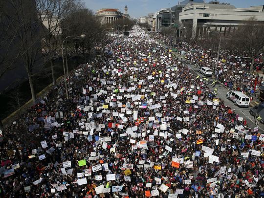 About 800,000 people flooded the streets of the Capitol to #MarchForOurLives –meaning a mass demand for stricter gun control – led by the a small group of teenagers who survived the recent mass shooting that killed 17 people (14 of them their classmates) and wounded 14 more at Marjory Stoneman Douglas High School in Parkland, Fla.