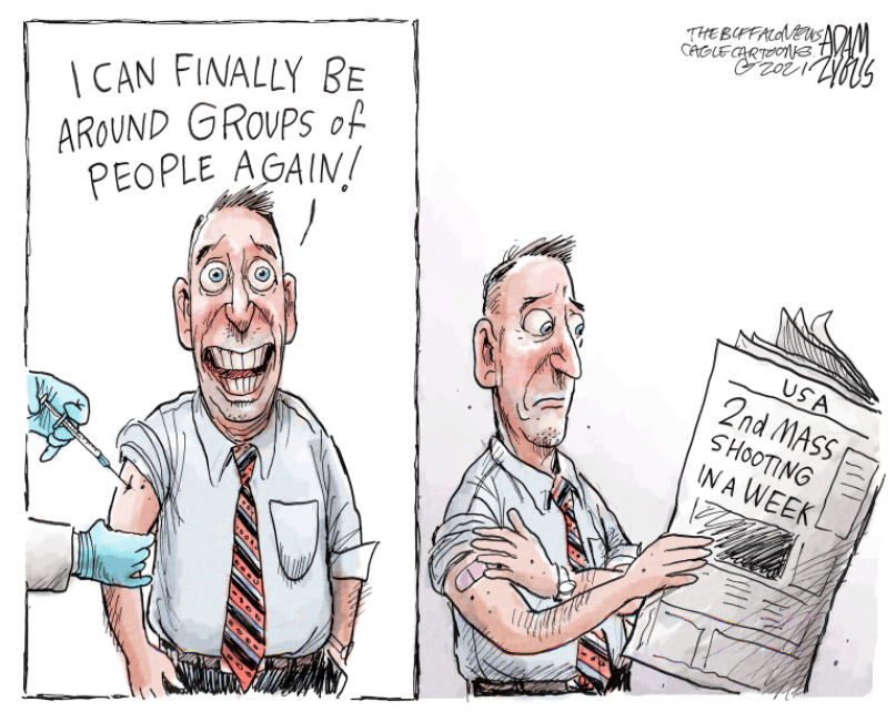 – SEVEN mass shootings in SEVEN days in the U.S. Yeah, there were TEN people killed in Boulder, CO at the King Soopers Supermarket on Monday, March 22. This followed the EIGHT people gunned down, including SIX Asian women, at three spas in Atlanta on Tuesday March 16.