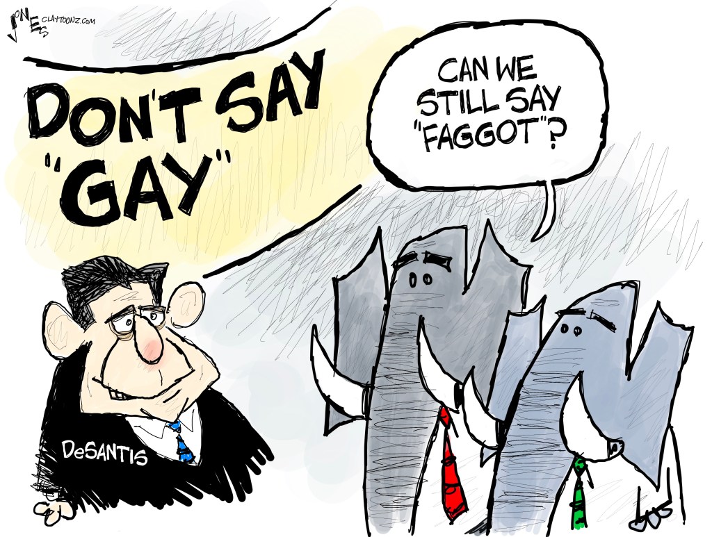 – You can create laws state-by-state, but in Florida specifically, that outlaw the mere mention of the word gay or LGBTQ community, in any grade school classroom, most specifically ones that have straight kids with gay parents and straight parents with gay or trans kids, erasing them from YOUR community and literally causing them to run for their lives.