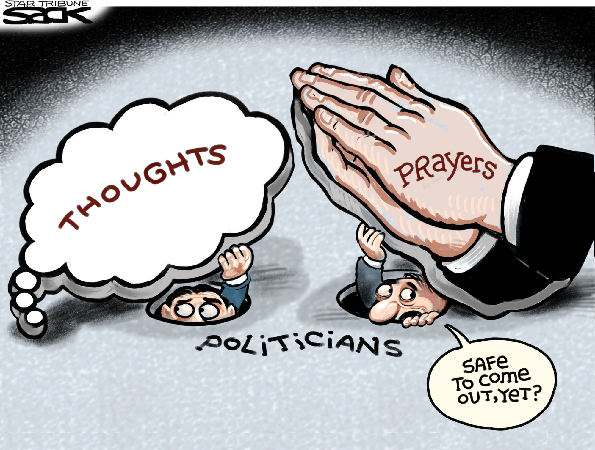 The ones who are angry, sad and often enraged that at times like these the thoughts and prayers police, a MINORITY of the country, can constantly be counted on to change the subject to how anti-faith community the rest of us are for demanding action.