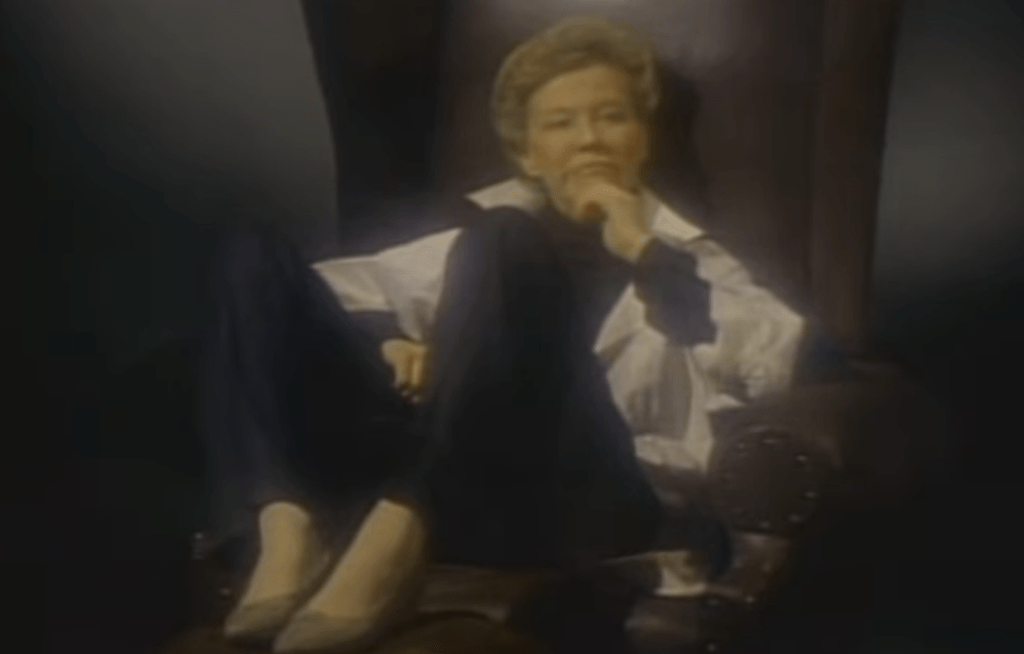 Wait, this can’t be Katharine Hepburn because this woman is far, far funnier than she is and just a little bit “off.” But in a good way. The affect, the way she tilted her head, and the knowing pretentiousness in her voice. It was a more grand but slightly more fun Kate. The way you’d hope she would be at a dinner party. Someone you could hang with and eventually get drunk with because you knew she’d be a lot more outrageous and would tell you the best stories in the world.