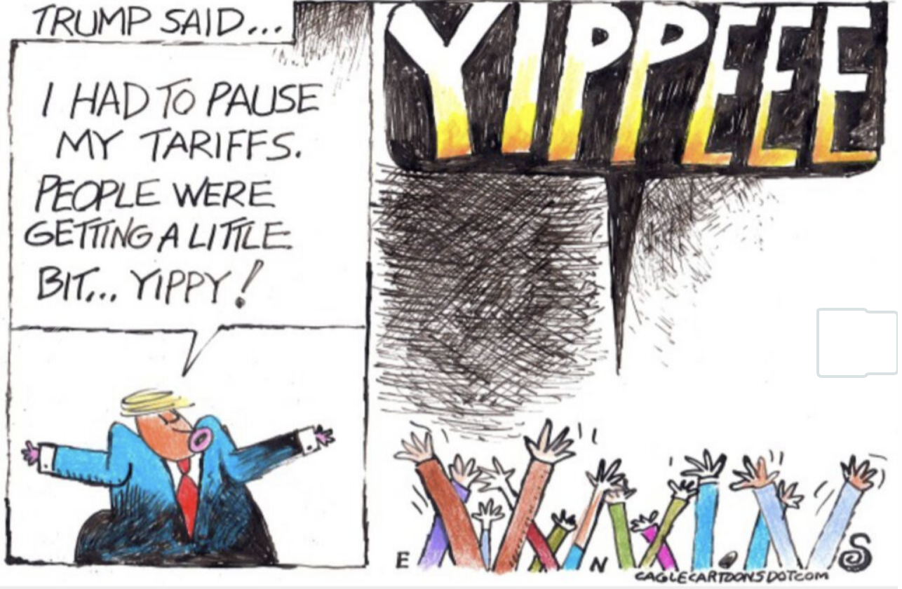 Of course, we have all of this on tape from a few days ago but that was forgotten as quickly as yesterday’s Truth Social post and replaced with talk about being “nimble.” And, in the next few days, by messaging from his minions, who kept repeating “the art of the deal, the art of the deal,” “the art of the deal.”