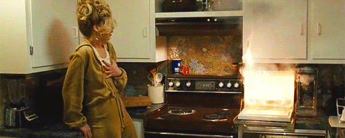 - Give it a minute and then slice. Oh, and turn off the oven and give it an hour to cool down before you touch anything.