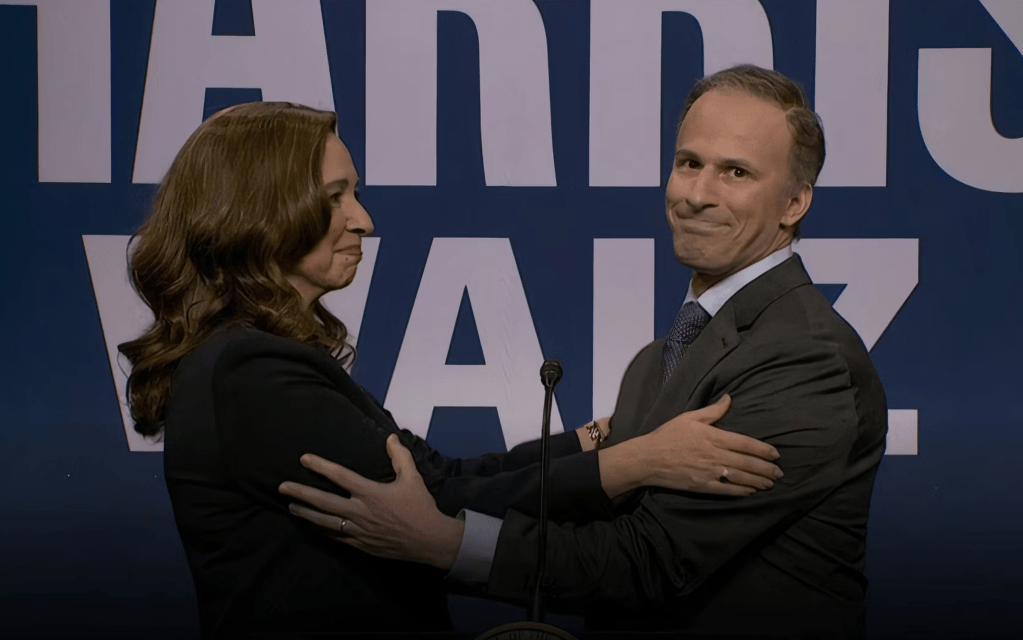 Not to mention Jim Gaffigan as Coach Walz (Note: Why didn’t I have his name in the pool?), Andy Samberg (Note: He’s Jewish, too) debuting in Studio 8H as Doug; James Austin Johnson returning as an endless loop of Trump; Bowen Yang as a decent but strange choice for Vance; and much-missed Dana Carvey doing a fairly on-target but slightly too beleaguered (Note: Was it the writing or him?) Joe Biden.