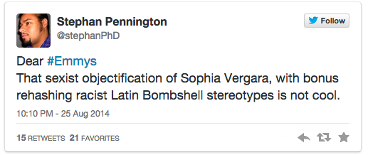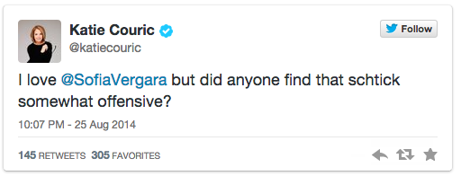 Who knew that the funny and beautiful actress from Colombia who became a gigantic American television star by playing a beautiful and funny woman from Colombia on the Television Academy’s favorite situation comedy of the last five years (see above) would be so heavily chastised, shamed and otherwise criticized for participating in a comedy bit where she played a beautiful and funny woman from Colombia on television?