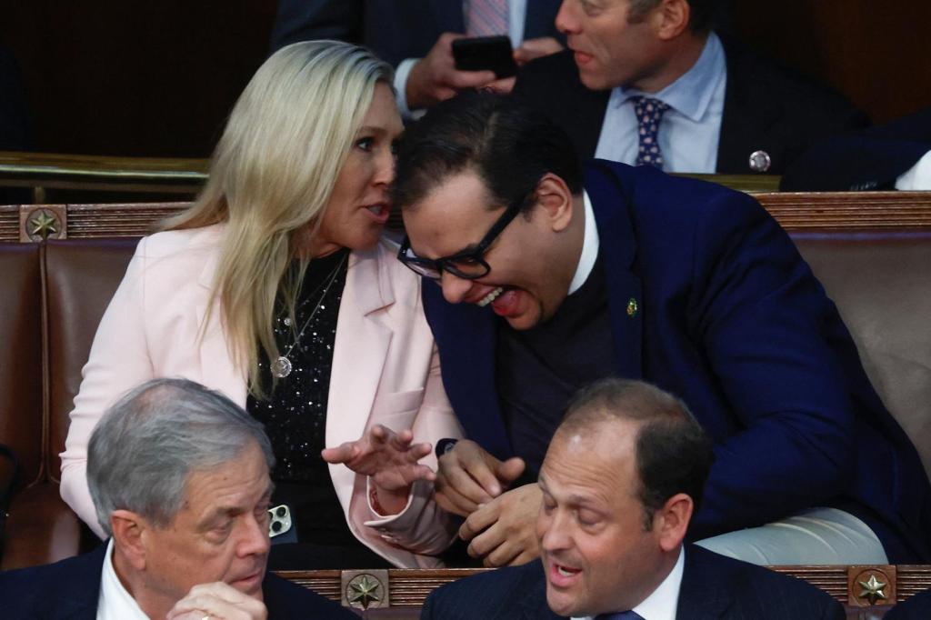 But not before Rep. Greene was then caught by intrepid C-SPAN cameras yucking it up with about to be newly minted, lair, liar pants on fire Congressman George Santos (R-NY).