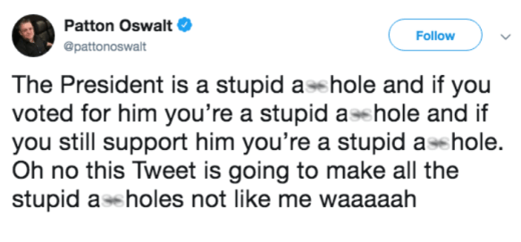 4- His loyal base of EVERY voter (Note: Whoever they are) who are okay with base insults against every non-white, non-straight or ethnically specific group under the sun from the Oval Office, as long as said base get to watch those who oppose their politics squirm while he throws then a bone on some issue near and dear to their hearts.